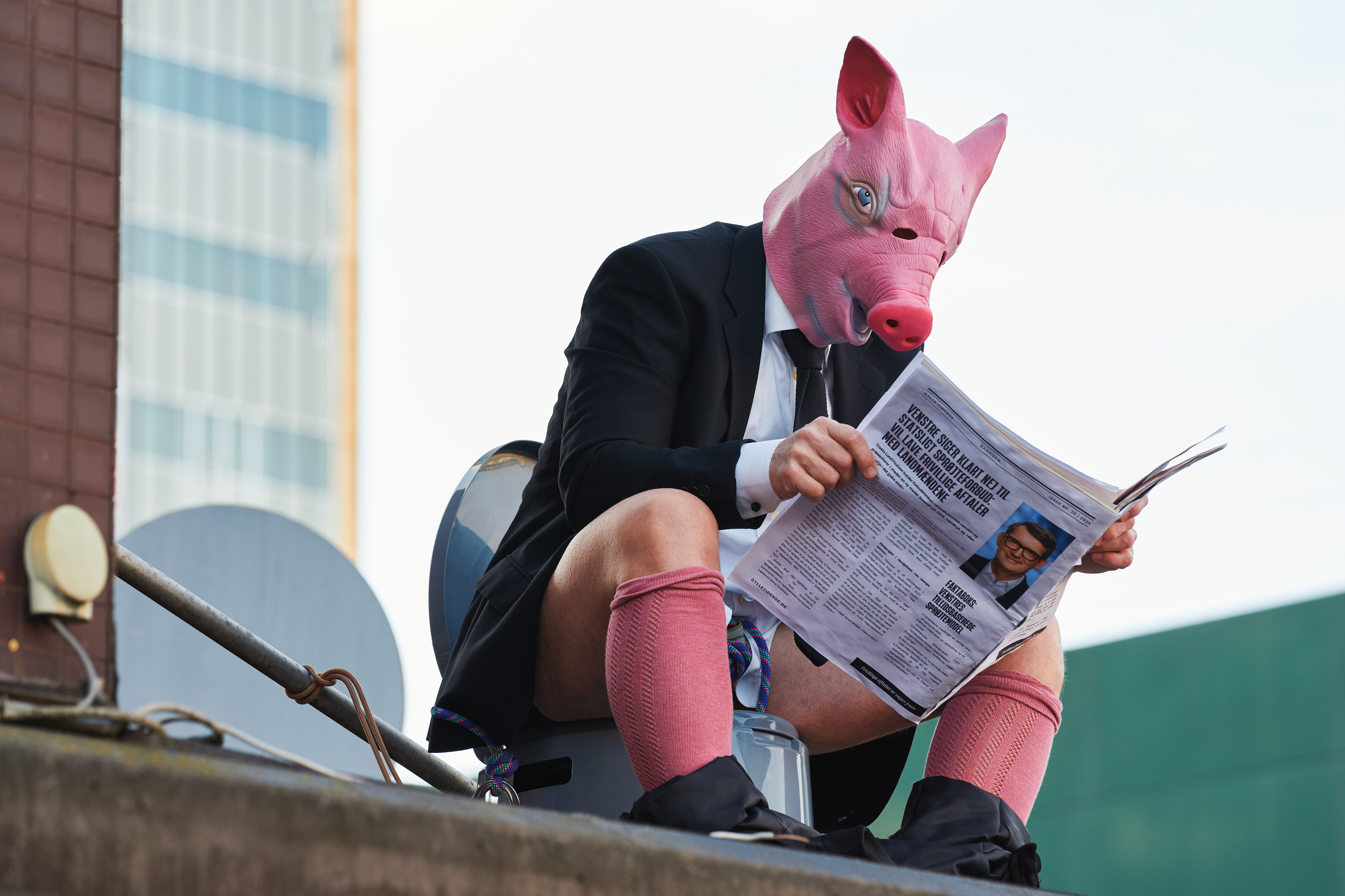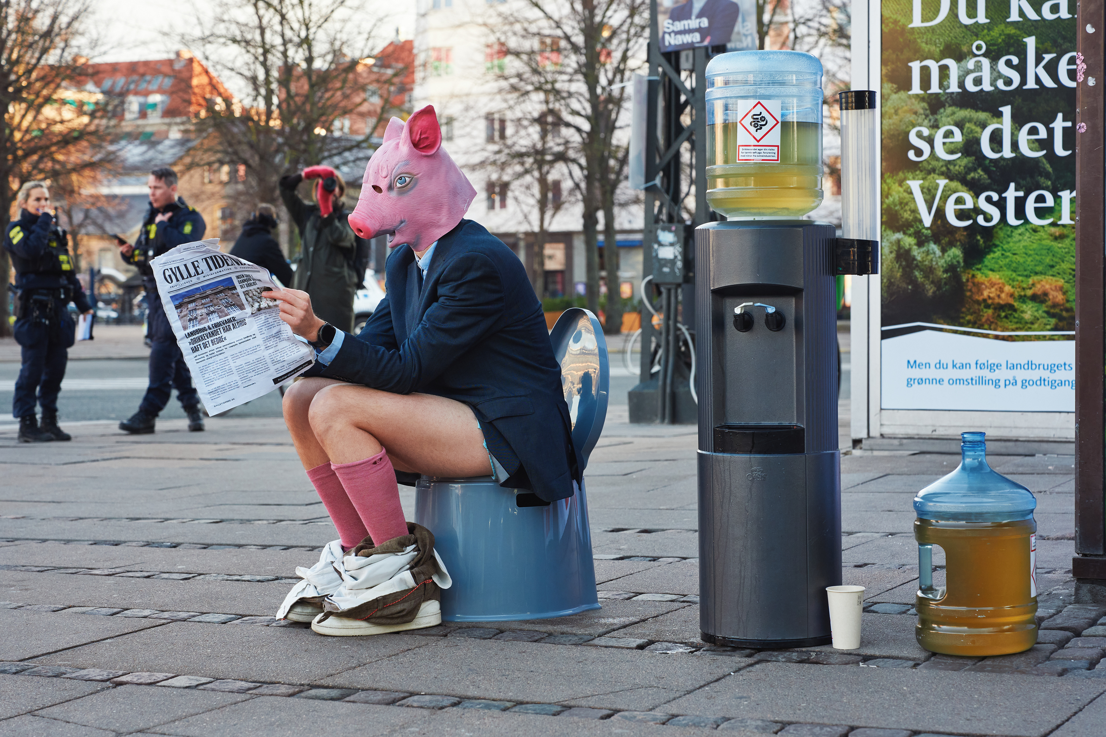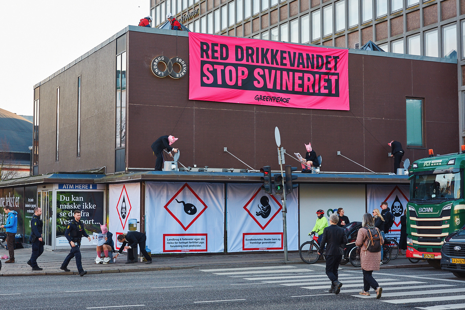 Photo assignment for Greenpeace. The action happened at the Danish agricultural lobbying firm Landbrug & Fødevarer, and highlighted the catastrophic impact that pig production has on our drinking water.